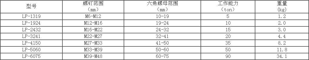 一、LP系列螺母破切器主要参数如下: